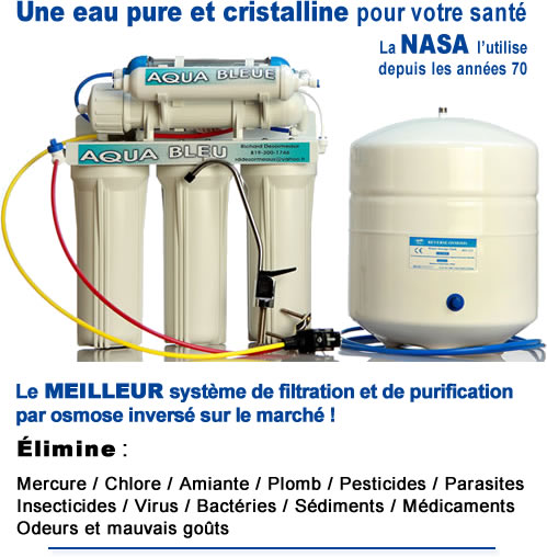 Il est important de comprendre la différence entre un système de filtration et un système de purification d'eau par osmose inversée. Un filtre enlève tout simplement les sédiments de l'eau. Il peut aussi absorber certains produits toxiques, mais il ne peut pas enlever aucune bactérie, ni virus, ni les impuretés microscopiques. Par conséquent, voilà l'importance et la nécessité de purifier l'eau par osmose inversée en plus de la filtrer.